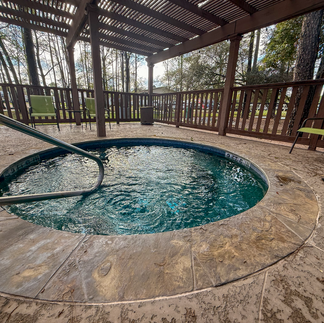 There was a pool we didn't get to utilize. Not sure if it was heated or not. It seemed clean. There is a covered area with tables for lounging and lounge chairs surrounding. The hot tub is adults only. While there was no splash pads or slides, there was a really cute pond to fish in that had a beautiful fountain in the center.